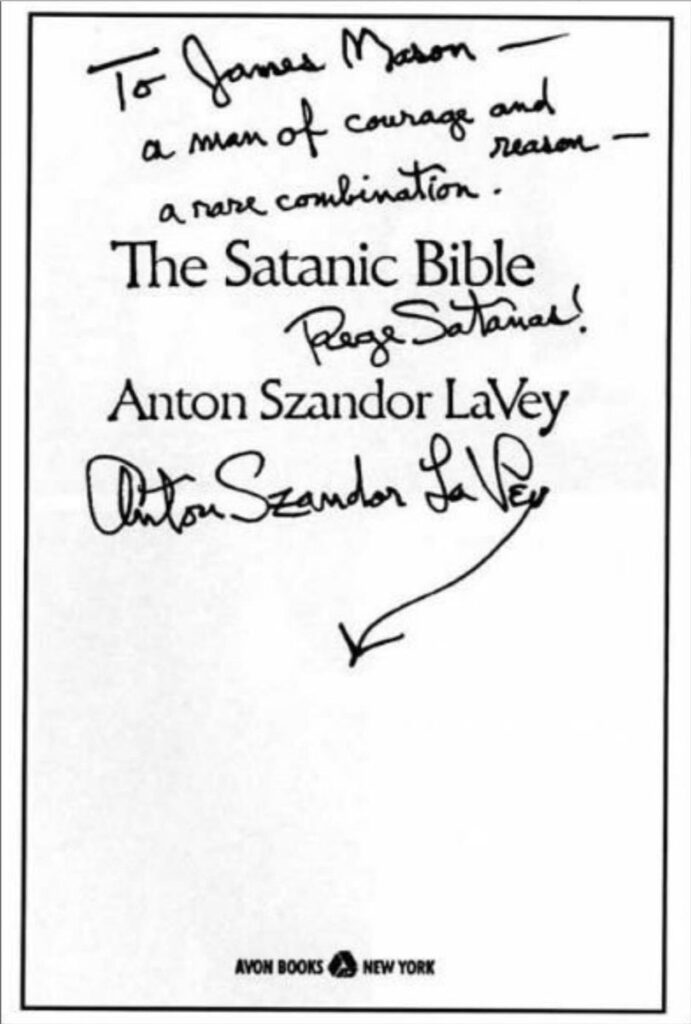 James Nolan Mason’s lange en moeilijke carrière in de wereld van het revolutionaire Nationaal-Socialisme nam vele vreemde wendingen, maar een van de meest obscure blijft zijn vroege verbinding met de Kerk van Satan. In de jaren dat Anton LaVey’s sekte uit San Francisco kelders opkwam tot popcultuur bekendheid, Mason borstelde schouders met die stroom van rituele godslastering. De Kerk van Satan bloeide op omkering-het bespotten van de Heilige, het paroderen van christelijke riten, het draperen van duisternis in de taal van vrijheid. Maar meer dan de theatraliteit van zwarte missen of schokkende ontheiliging, hield Mason’ s aandacht echt vast door de openlijke omhelzing van het sociaal darwinisme door de kerk. LaVey verhefde kracht boven zwakte, overheersing boven terughoudendheid, en vierde een hiërarchie van de sterken tegen de kudde. Voor Mason, die al doordrenkt was van bewondering voor Adolf Hitler en het Nationaal-Socialisme, klonk dit als een bevestiging van wat hij al geloofde sinds zijn tienerjaren. In de retoriek van LaVey’s Satanisme zag Mason een verwrongen spiegel van Hitlers geloofsbelijdenis, ontdaan van zijn historische discipline maar gloeiend met dezelfde minachting voor zwakte. Het was deze overlap-niet louter godslastering—die hem in die baan trok.