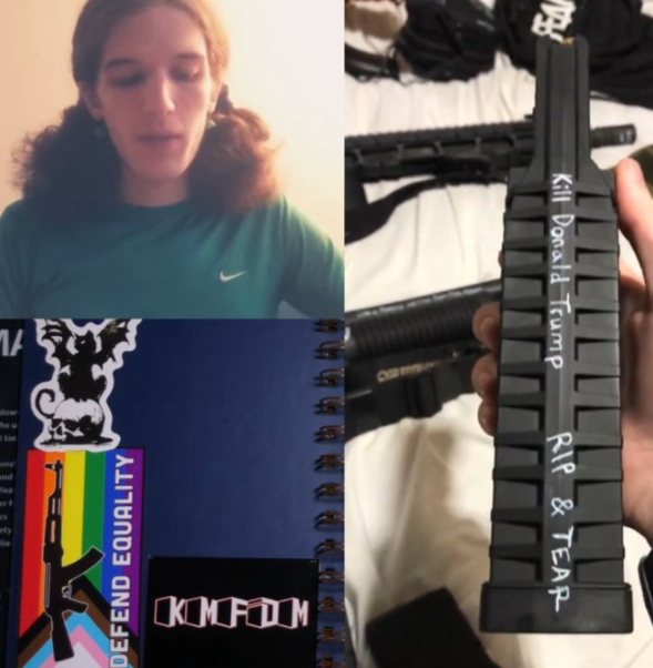 Een screenshot van de video toonde een semi-automatisch geweer en een geweer, met tekst op een tijdschrift met de tekst “kill Donald Trump.”