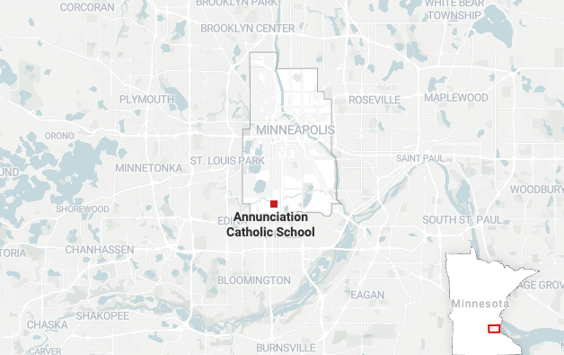 Autoriteiten reageerden op een gruwelijke schietpartij op school in de Annunciation Church en School in Minneapolis op woensdagochtend.