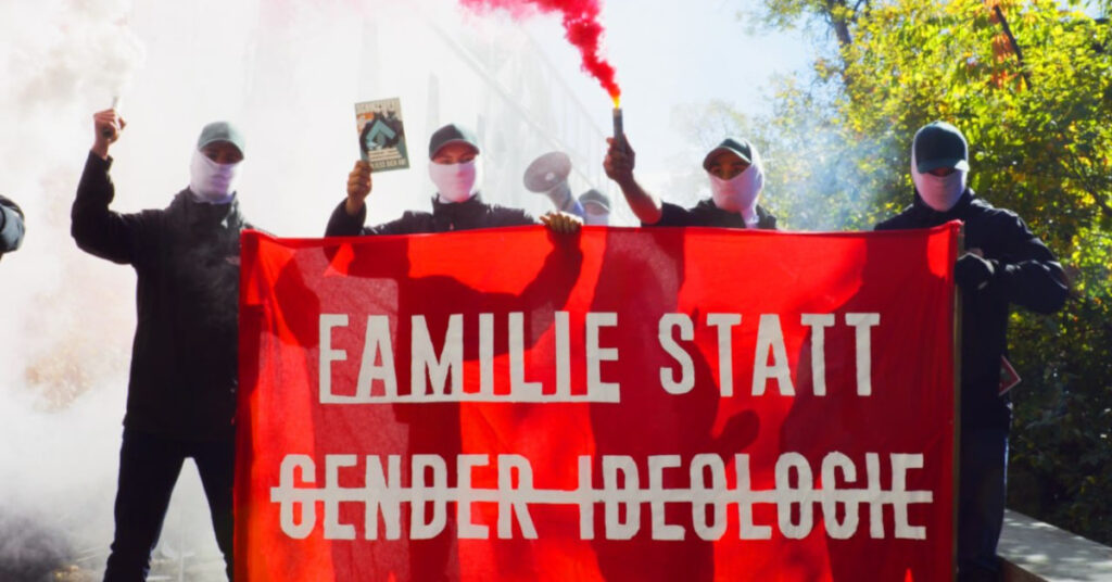 De autoriteiten beschouwen de slogan “familie in plaats van genderideologie” als opruiing. Foto: Junge Tat